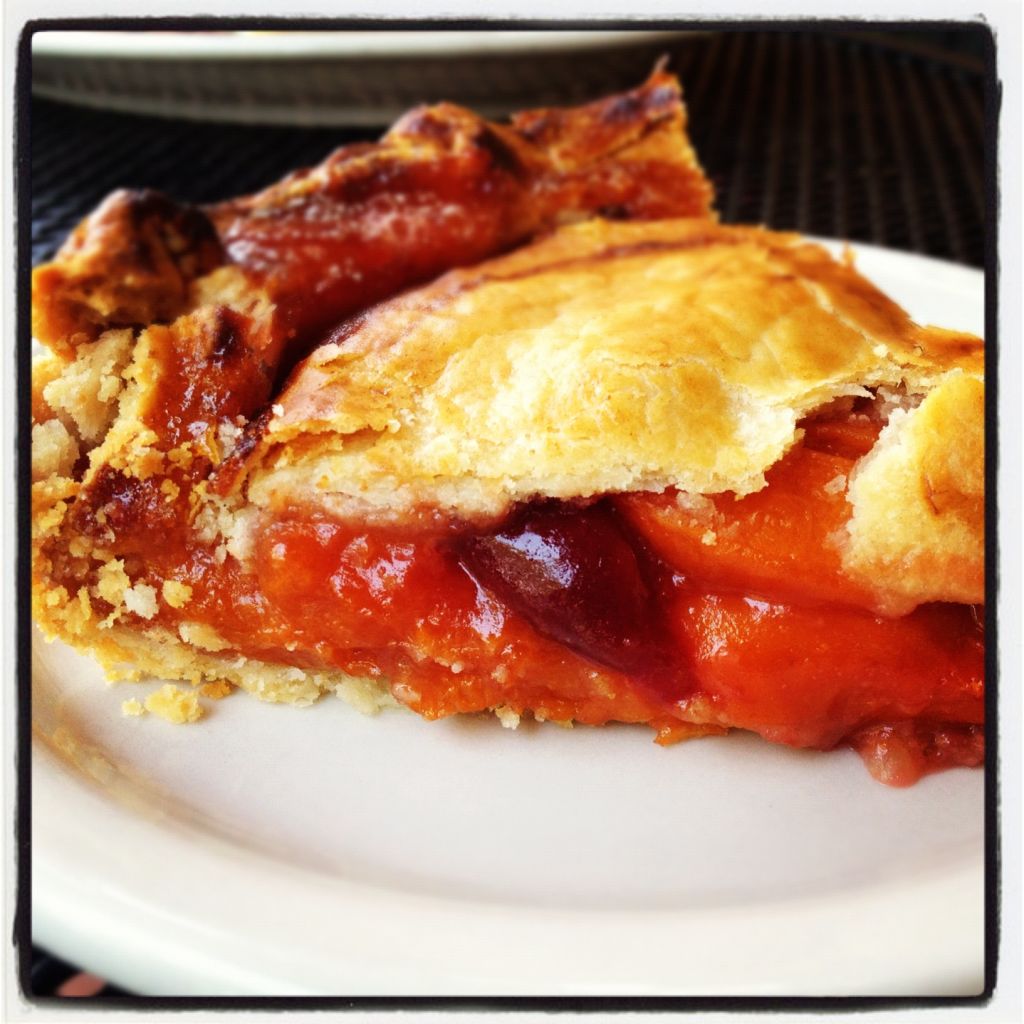 HOTCHKISS, CO – Winding along Highway 133, on the way to Paonia, a giant road sign beckons with “apricots, cherries and peaches.” It is Delicious Orchards, a must-stop for fruit savvy tourists here; a beacon for U-Pickers as well as hungry travelers. The cafe inside the tiny market has a compact menu of items that are better than they need to be. Tamales smothered in spicy green pork chili and a homemade bratwurst reuben were two of the better roadside meals I’ve had in a long time. But when it came time for dessert, there were just two choices, both of them pie, and both irresistible.