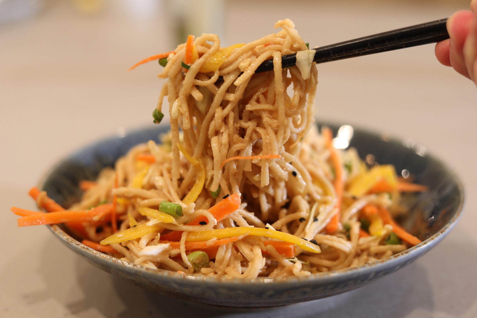 After I posted a picture and some videos of this peanut noodle salad yesterday on Insta and Facebook, I had several comments asking for the recipe, so I’m obliging. By the way, I was making the salad as a way to highlight buying local ingredients from a local grocer (in this case, Green Grocer in West Town) thanks to Mercato. You can get $10 off your first order if you use the code “stevedolinsky”.