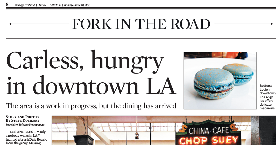 Eating Downtown L.A. (Chicago Tribune – Travel) June 23, 2013 About Bars Blog By Steve Dolinsky Click here to read my story about walking downtown L.A. and finding better food than you’d expect. Related: downtown L.A. Los Angeles travel Tribune walking Leave a Reply Cancel replyYour email address will not be published. Required fields are marked *Comment * Name * Email * Website Δ