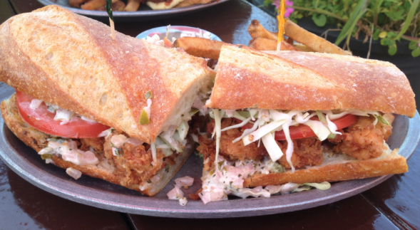While The Twisted Spoke probably gets more attention for their Smut & Eggs promotions (porn after midnight!) and in-your-face ads, the food has always been several notches above the usual bar food crap that most places offer only to soak up the beer and booze. The Fatboys (burgers) and bloody marys are almost legendary, but the shrimp po’boy is a more recent addition, and it’s stellar. So good, in fact, (and such a dark horse on the menu), that my brother-in-law called me last week, as he was grabbing a bite before the Kanye show at the United Center, and asked if it was, indeed, as advertised.