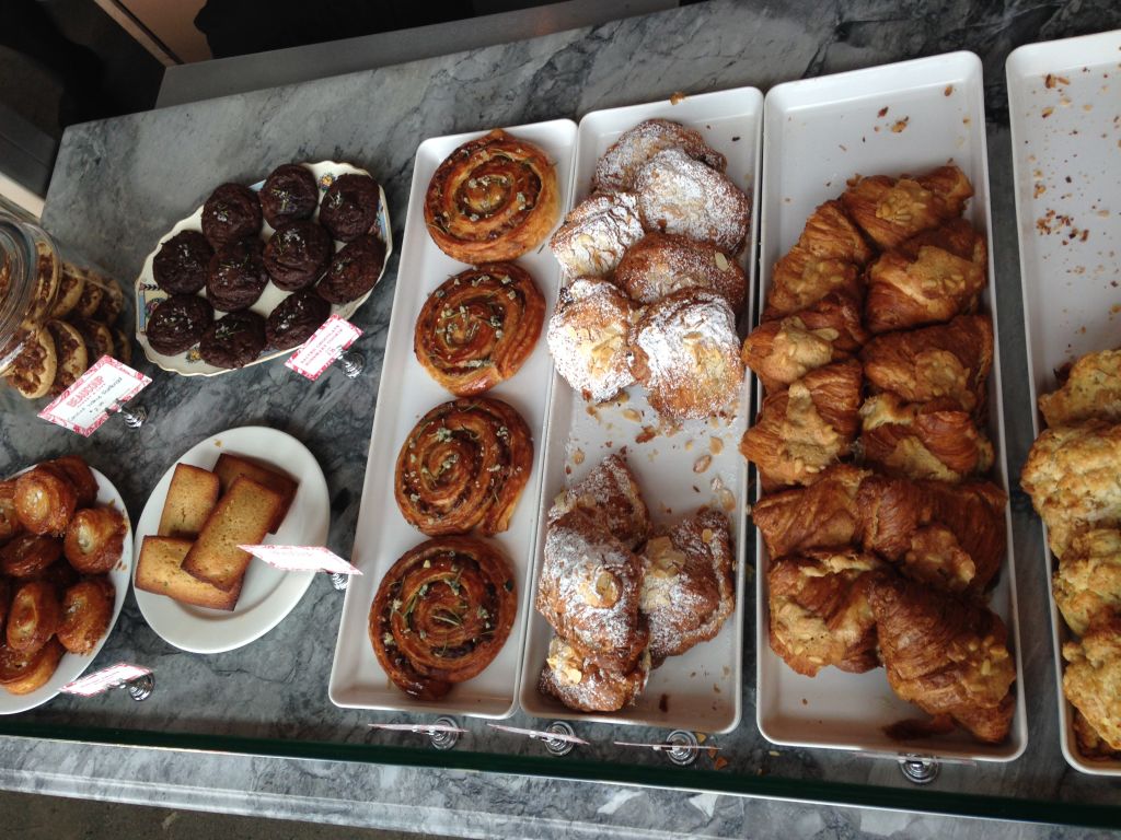 Back in the heart of downtown, tucked into a corner of the Rosewood Georgia Hotel, Bel Café is the province of Wayne Kozinko, the pastry chef at the hotel who also oversees the sweets at Hawksworth restaurant. Kozinko offers both sweet and savory items, like a ham & cheese-stuffed gougére with a chive omelet tucked inside, or an assortment of creative and delicate macarons. I particularly liked his croissants – flaky, tender, buttery affairs, clearly loaded with good butter, and sometimes filled with a rich almond paste and covered in slivered almonds and powdered sugar.