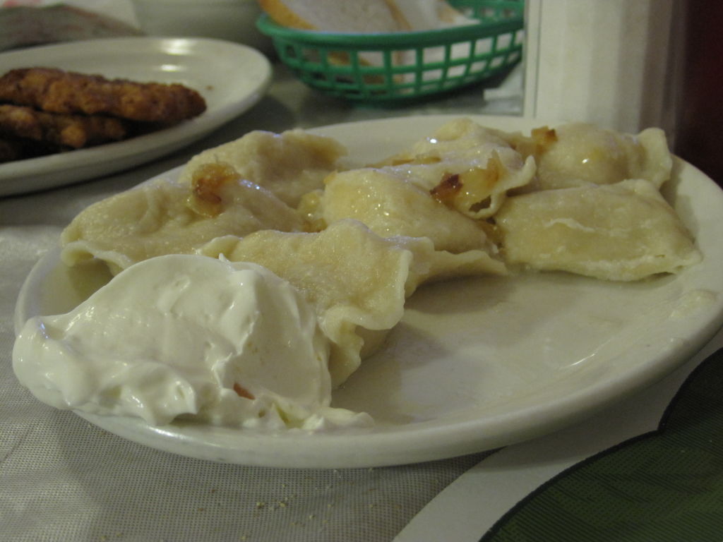 My last post for this series led me to Devon Avenue for some super-cheap and delicious South Asian cuisine, but this week, I was craving some food that would remind me a bit more of home. I have never seen my grandfather cook, or even so much as boil an egg; there were a few times, however, when I remember Pop-Pop standing at the kitchen counter for hours making homemade pierogi. As a kid, I could sit at my grandparent’s kitchen table and eat a whole plate of these potato and onion-filled dough pockets, smothered in sauteed onions and sour cream. Feeling a bit nostalgic, I sought out an authentic and inexpensive Polish restaurant.  Podhalanka in Noble Square fit the bill perfectly.